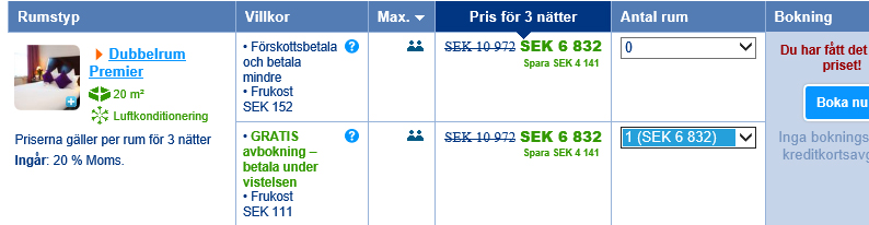 Hursomhelst! Best Western Premier Shaftesbury Piccadilly Hotel blev det. Vi sträckte oss lite i budgeten men vi tyckte det var okej då hotellet var fint, fått bra kritik och verkligen ligger centralt. Så 6832 kr för vårt dubbelrum. Det blir ca 3400 kr för oss var för tre nätter. Det känns kanon!