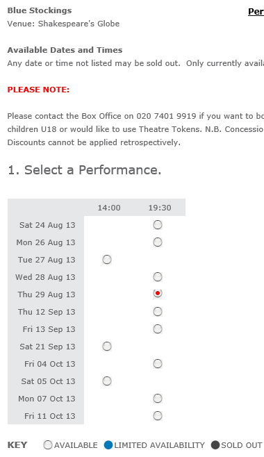 Pratade precis med Maria och vi började planera lite smått vad vi ska hitta på där. Först så vill hon absolut gå på British Museum, och det vore såklart roligt. Och sen skulle vi båda vilja gå och se en pjäs! Vi kollade på Shakespeare´s Globe Theatre´s hemsida. Där såg vi att dom hade en föreställning av "Macbeth" på fredagen den 30:e, och den ville vi båda se! Men, den var utsåld! Okej, men en "Midsommarnatts dröm" gick också, flera föreställningar under de dagar vi är där, men, ALLA dom föreställningarna var utsålda också! Ja, så det enda som fanns kvar om vi verkligen ville se en pjäs var "Blue Stockings" på kvällen på torsdagen, samma dag som vi kommer dit. Men den går först klockan 19.30 så det funkar bra. En pjäs vill vi ju se så vi slog till på den.