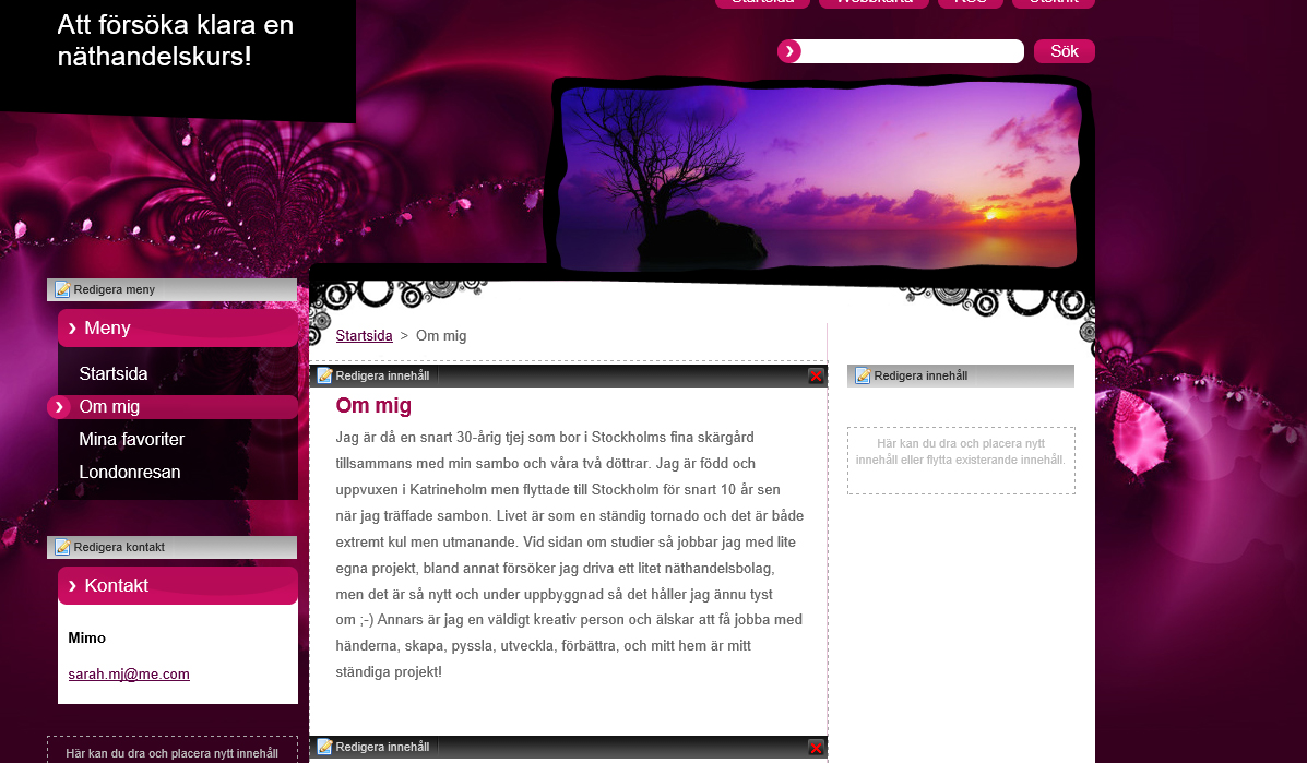 Nä, det blev inte den andra i bloggform heller. Jag kände hela tiden att något var fel, många komponenter var fina var för sig men herregud vad rörig sidan kändes ändå när man tittade på den. Nu har jag valt en mer sober sida, lite mer dämpad och den ser mycket mer proffsig ut. Nu ska jag nog stanna här ett tag...